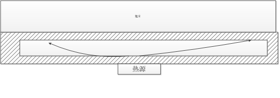 如圖所示:點熱源在底部,散熱器底板變成空腔。當(dāng)點熱源啟動,腔內(nèi)工質(zhì)受熱蒸發(fā)變成氣體攜帶熱量,跑向冷端;遇冷凝結(jié)釋放熱量再回流;